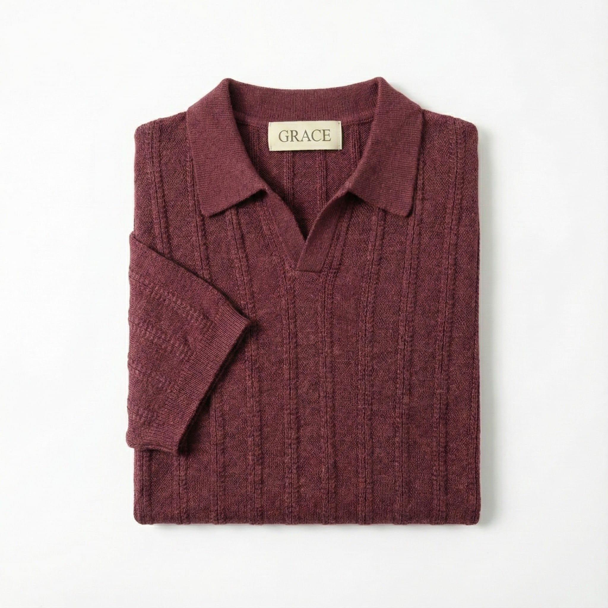 The Royal Navy Stripe Knit Polo By GRACE elevates the standard black tee into a piece of formal knitwear. Built with 350g CVC blended yarn, it provides the perfect balance of softness and durability for the modern professional.